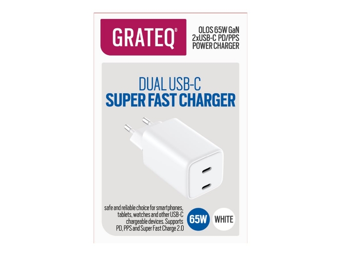 GRATEQ OLOS WALLCHARGER PD/PPS 2xUSB-C GaN 65W WHITE