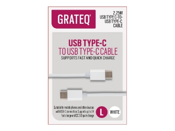 GRATEQ USB-C - USB-C CABLE 100W 2.25M WHITE